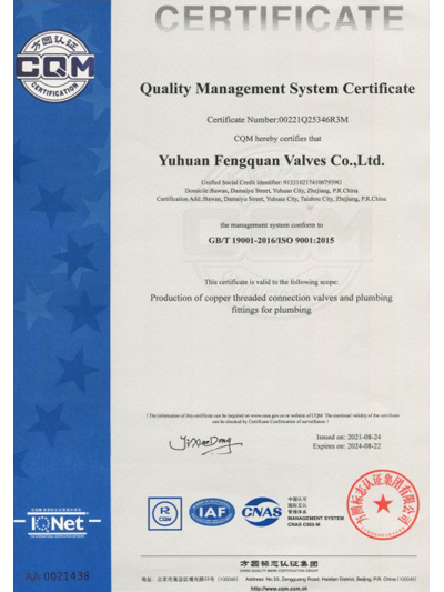 MORE+玉環豐泉閥業有限公司坐落于閥門之都 - 浙江玉環,是一家集研發、設計、生產、銷售服務于一體的綜合性公司。公司地處浙江東南沿海,緊靠國家二類港口大麥嶼港,離臺州機場58公里,離溫州機場30多海里,交通十分便利。公司創建于1988年,專業生產銅制閥門、水暖配件及管件;產品廣泛應用于太陽能、冷熱水、煤氣管件及采暖等建設項目...